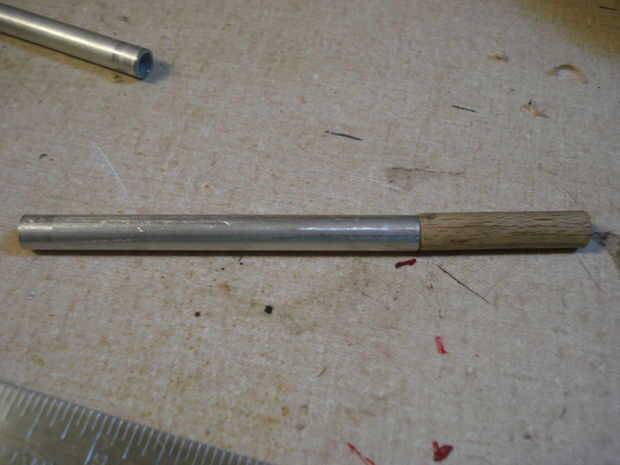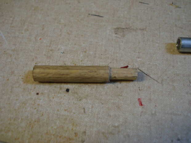 Cuando haya terminado de talla, pegar las espigas más cortas en las secciones de tubería. Los tacos largos deben ser capaces de pop y salir pero encaja perfectamente.