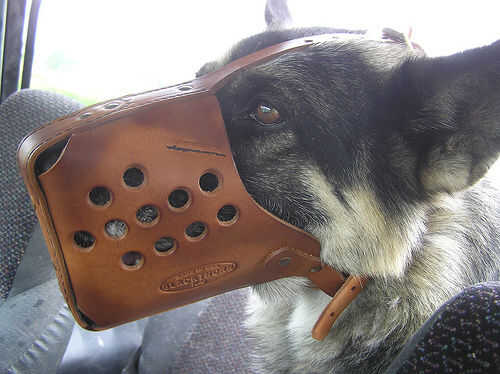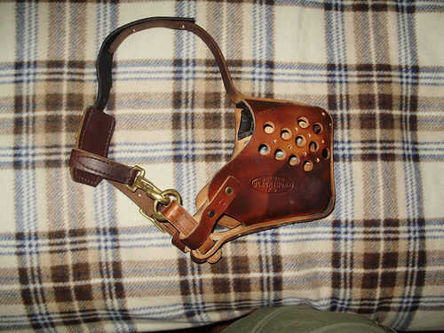 Cuero policía bozal - este cañón fue diseñado para ser utilizado en un GSD, ideal para perro muy agresivo ya que es muy difícil para el perro eliminar cuando está montado correctamente, permite que el perro abrir su boca dentro de la boca del cañón a las bragas, pero que no puede afectarte. Este tipo de boca tiene a veces una liberación rápida broche de presión en la correa para el cuello, normalmente tiene un metal o un refuerzo de acero construido dentro de la boca del cañón para ayudar a mantener su forma bajo presión. También está diseñado para que el perro usar como un mejorar ram para derribar personas, esto es muy eficaz y mejor que conseguir mordido.