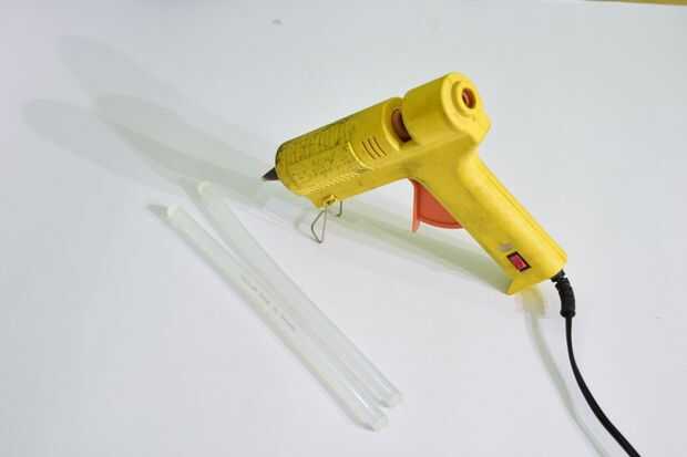 Pegamento caliente es también campo común entre la artesanía y el trabajo de bricolaje. Básicamente es una pistola de pegamento caliente en el que los palillos de pegamento derretidos y aplicados al material. Es un gel como fundido y se solidifica a un sólido cuando se enfría. Es bastante fuerte y es mejor cuando se aplica en gran cantidad