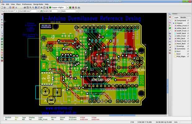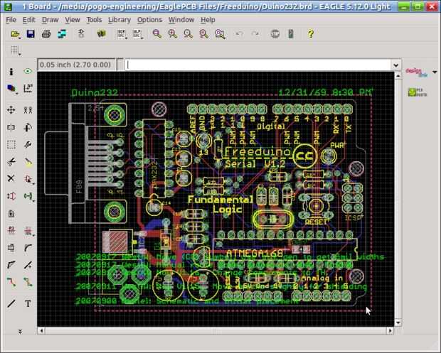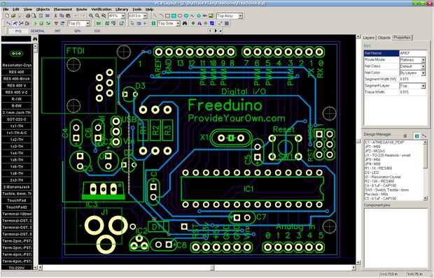 Eagle CAD es el software de diseño PCB favorito entre los diseñadores de hardware de código abierto. Por eso hay un montón de extensas bibliotecas de componente y huella disponibles para muchas de las piezas utilizadas por aficionados y la comunidad open source. Si bien es un programa comercial, la empresa ofrece una versión gratuita limitada sólo por el tamaño del PCB.