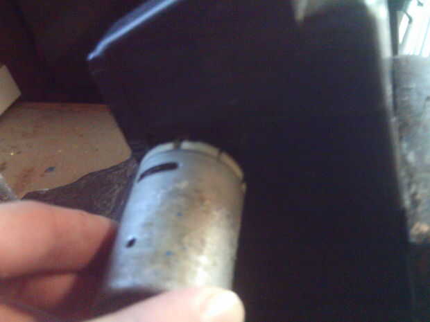 Ahora tenemos que cortar el punto para el motor de la parte posterior de las arcaicas motor al lado de la caja la dibujó una línea hacia fuera del motor en el lado del corte hacia fuera.