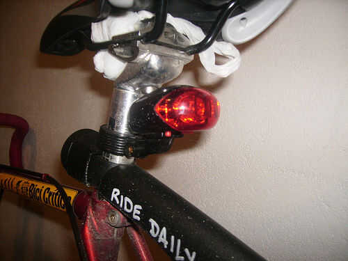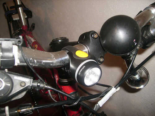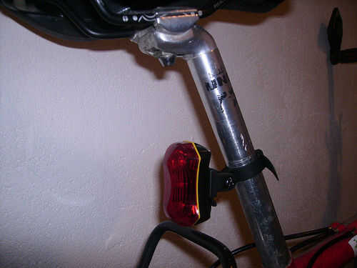 Faro delantero debe apuntar unos 3 o 4 metros hacia delante. Si su elección tiene pocas posiciones de luz, un parpadeo uno te hace más visible porque te diferencias de una farola;) y mantiene la vida de las baterías un poco más.