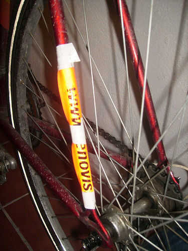 A veces viene como regalo en las revistas de deporte y grandes eventos. Cortar cuidadosamente y sacar el metal interior (tener cuidado pues podría cortar un dedo en menos de un segundo). Una vez que tenga 2 piezas, pegamento en horquilla posterior de los marcos.