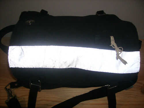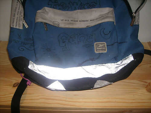 a veces, ciclista paseos por la noche usar un chaleco reflectante, pero no es obligatorio (casi en iSPain). Si utiliza con el mismo bolso, coser una banda reflectante en él, en la parte inferior. Podría utilizar un chaleco ' uno, o comprarlo en una ferretería.