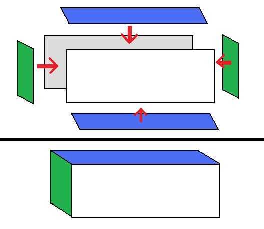 * Dos rectángulos más cortas, la mitad del ancho de las caras delantera y trasera a los paneles del lado izquierdo y derecho (verde en el diagrama)