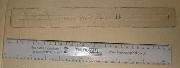 Me dibujó cerca de mi regla para obtener la forma... luego dibujó un cuadro 1 cm ancho por de cerca de 28cm largo dentro de la forma de sintonizador... Si se puede ver en la imagen, he marcado hacia fuera un poco rectángulo (justo después de donde he escrito 'tuner') son de este pedacito no corta, ya que representa el cursor que apunta a que estación de radio en... Sólo podría pintar eso detalle en... pero estaba siendo arty ;) jeje