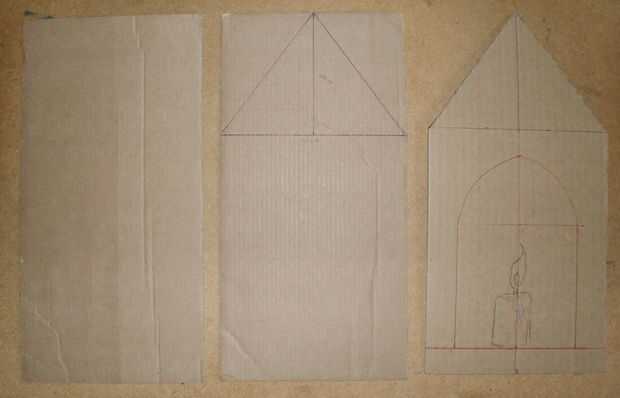 Para obtener el 'techo' de su linterna para doblar hacia adentro, te aconsejo anotar a lo largo del borde inferior del triángulo (en lo que juzgas a la parte interior de la cartulina que está usando, si puntuación en lo que va a ser la cara exterior, quedará una antiestética costura), esto le ayudará cuando se llega a pegar esto todos juntos.