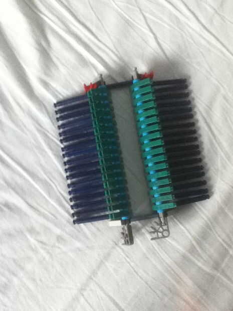 esto es como montar los elementos activos zig-zag para una antena Gray-Hoverman tv de cuarto de pulgada preparado fuera de enlaces de tubería de cobre de diámetro. Los enlaces se colocan en una plantilla de montaje y soldados juntos. Elementos de cob