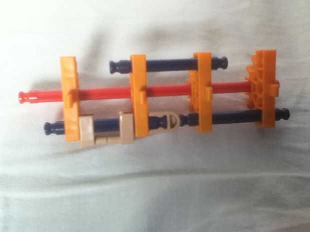 Este elemento actúa como elevación del brazo de un cuarto a otra pista.Paso 1: La base Como de costumbre, la base es fundamental.Paso 2: Siguiente capa Esto va sobre la base. Tenga en cuenta los conectores blanco y los conectores naranja.Paso 3: cont