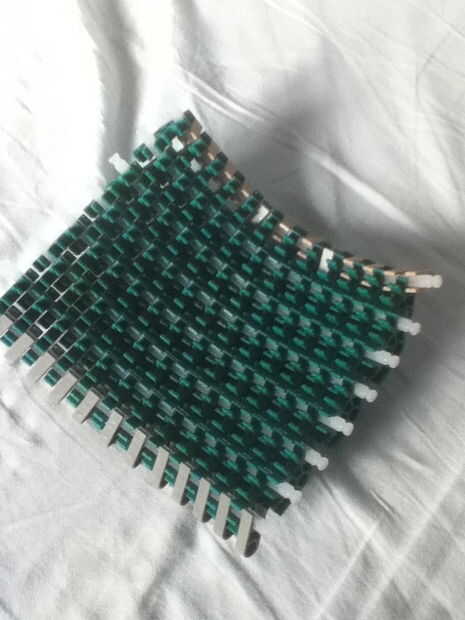 esto es como montar los elementos activos zig-zag para una antena Gray-Hoverman tv de cuarto de pulgada preparado fuera de enlaces de tubería de cobre de diámetro. Los enlaces se colocan en una plantilla de montaje y soldados juntos. Elementos de cob
