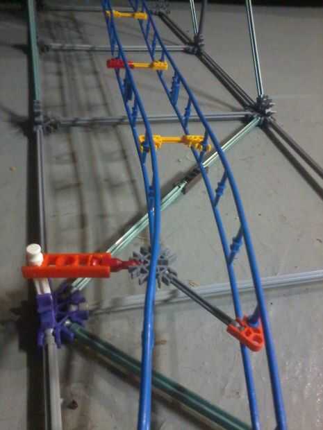 Similar a la ruta de Knextreme encontrar aquí, esta ruta utiliza dos piezas de pista micro montaña rusa como rieles. Piezas micro conectan los dos rieles y piezas de transición pueden attatch a una torre, como se haría con una micro montaña rusa. Vueltas están fáciles, las gotas son casi imposibles (a menos que tengas los rieles curvos, que yo no). Última foto muestra algunas de las posibilidades para conectar los dos rieles. El resto son de torre espacio.