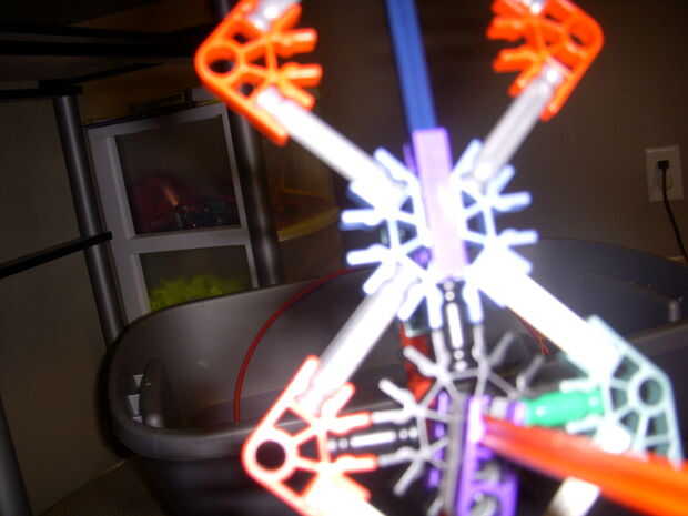 Paso 1: Flipper Recoger estas piezas: 3 discos azul 3 naranja 2 blanco/copo de nieve conectores de 12 cortos verde/negro (ejes más cortas) 4 azul/púrpura ejes 12 gris/púrpura conectores (no sé qué llamarlos) 4 ejes blanco 20 conectores rojoPaso 2: Fl