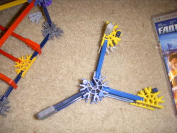 Paso 1: Flipper Recoger estas piezas: 3 discos azul 3 naranja 2 blanco/copo de nieve conectores de 12 cortos verde/negro (ejes más cortas) 4 azul/púrpura ejes 12 gris/púrpura conectores (no sé qué llamarlos) 4 ejes blanco 20 conectores rojoPaso 2: Fl