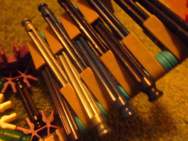 Aquí están las instrucciones para mi elemento brazo gotero invertido. Este elemento fue creado cuando trataba de poner bolas en nuevas localizaciones en un elemento que estaba diseñando que no funcionaba. Abajo está la lista de piezas:BARRAS:Verde: 3