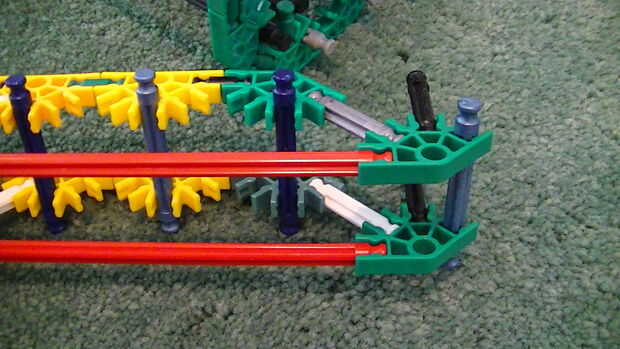 ¡ Hola! Aquí es un elemento de mi máquina de la bola de K'nex Freestyle! Fue ofrecido en ruta 3 donde trajo la pelota al piso blanco en la parte inferior. Lo creé porque realmente quería encontrar un uso para las ruedas! Una desventaja de esto fue qu