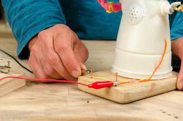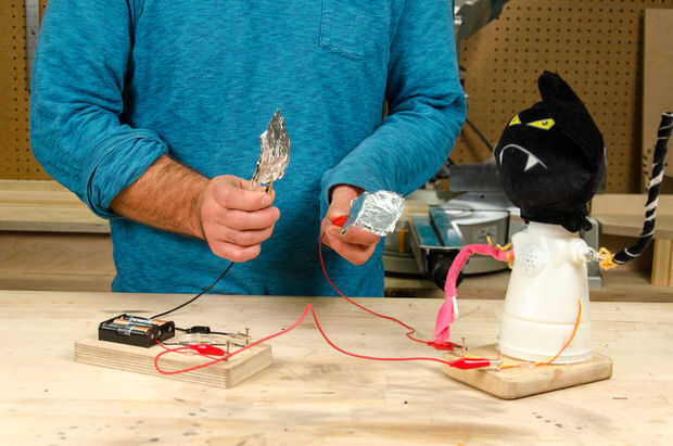 También puede montar baterías en bloques de madera de forma similar con clavos de cobre. Con estas piezas adicionales, usted puede utilizar pinzas y papel de aluminio cambia a desencadenar los movimientos electrónicos como parte de la reacción en cadena.