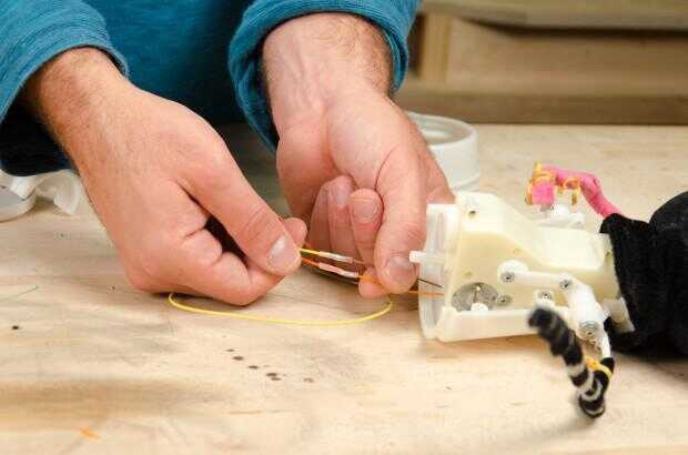 Usando la cuchilla exacto y tijeras, corte la piel y quitar el relleno del juguete. Como disecan, trabajar con cuidado para no cortar los cables ocultados bajo la superficie