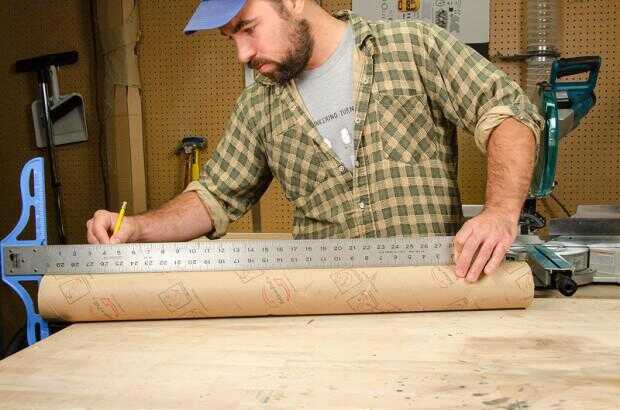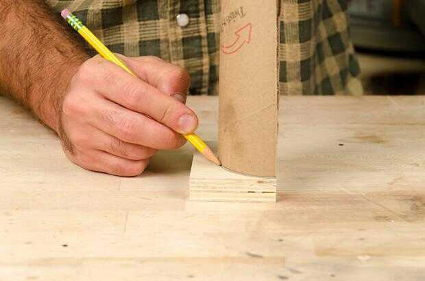 Alinee el medio pedazo de tubo de cartón en los bloques y marcar la curva de