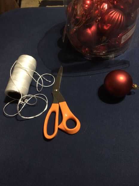 Necesita adornos de Navidad de plástico baratos y cadena. La única herramienta que usted necesita es un instrumento de corte.