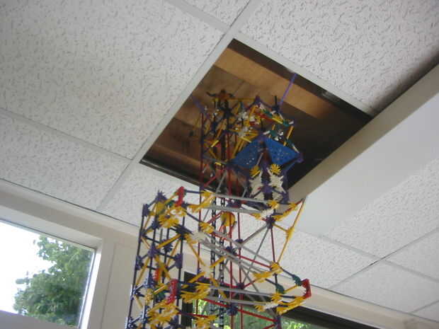 También es buena oportunidad de mostrar algunas fotos de mi cm 332 (130 pulgadas, 10.9 pies) altura máquina! Es el más grande que he visto y también el más grande en Instructables. Como se puede ver que tenía que sacar una de las placas de techo para colocarlo en.