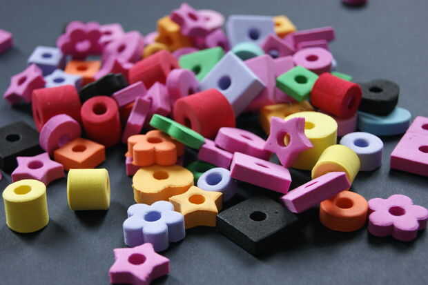 Pegue la espuma perlas junto con pegamento en un patrón aleatorio.