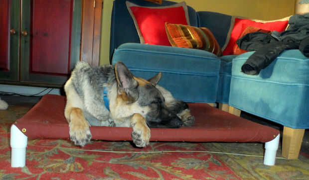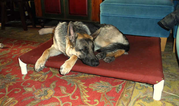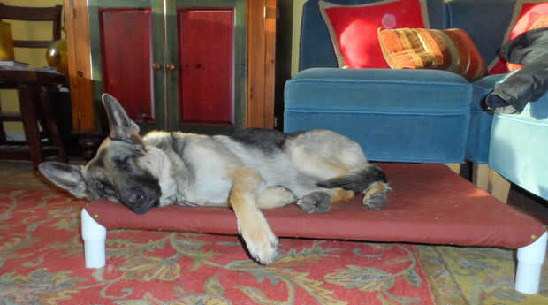 Cuando llegamos nuestro perro Myah, conseguimos una de las camas de perro peluche típicos de una tienda local. A ella le gusta la cama bien pero me encontré moviendo la cama de la planta a la planta baja varias veces al día. Sabía que podía solo dejo la cama de arriba (donde duerme) pero quería no tener que estar en el piso. Es más fácil en sus empalmes de esa manera. Miré y decidió en una cama elevada. Hay un número de estas camas en el mercado, algunas buenas, otras no tan buenas. Uno de los mejores que hay es bastante caro y no me gusta gastar dinero en algo que puedo construir yo mismo así que decidí construir una cama elevada para dejar en la planta baja. La ventaja de una cama elevada es que mantiene al perro del suelo duro, el piso frío en el invierno, y ayuda a mantener más fresco en el verano. También ayuda a mantener fuera de los muebles! Me encontré una cruz un video hecho por un rescate de animales y decidió que esto era lo que quería construir. Me decidí a documentar la construcción como mi primer instrctable.