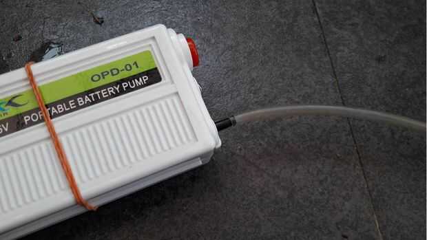 3. El tubo mismo, lo conecto con la bomba de aire.
