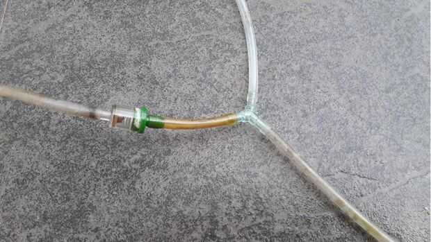 1. En primer lugar, conectar el tubo de aire con el conector de 3 vías.