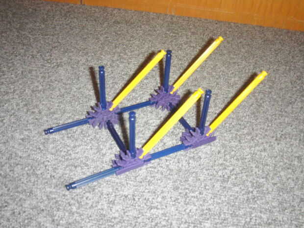 Hey!Este es mi sistema de ascensor de k'nex nuevo (y primer). Se me ocurrió esta idea, porque el profesor de física nos estaba mostrando el efecto cuando algo que es pesado (martillo) llega una luz - cosa de peso. (una bolita) Asi que me hice ese sis