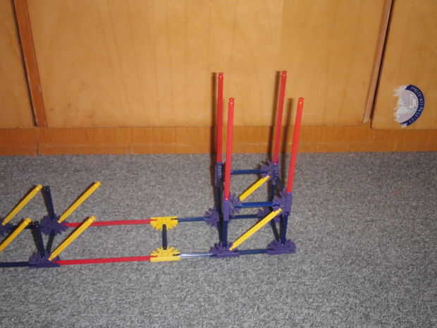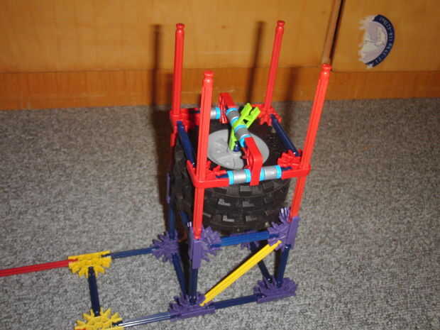 Hey!Este es mi sistema de ascensor de k'nex nuevo (y primer). Se me ocurrió esta idea, porque el profesor de física nos estaba mostrando el efecto cuando algo que es pesado (martillo) llega una luz - cosa de peso. (una bolita) Asi que me hice ese sis