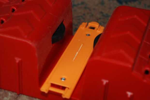 Antes de fijar el aumentador de presión tiene dos cosas importantes que hacer. En primer lugar tienes que cortar ese trocito de naranja de plástico. Será más fácil si usted Desenroscar la pista, cortado y el tornillo vuelva. Este no cambia el rendimiento de coche de montaña rusa. Realmente vamos a coches de otros conjuntos micro correr el aumentador de presión sin el perro de cadena golpear ese pedazo de plástico. La segunda cosa que tienes que hacer es limar los lados del aumentador de presión para que la bola puede caber a través de. Utilizar un filtro o papel de lija. Algunas de las fotos a continuación muestran cómo debe parecerse al que se hace. Después de que sólo Conecte el motor al resto del modelo como se muestra a continuación.