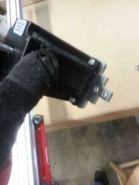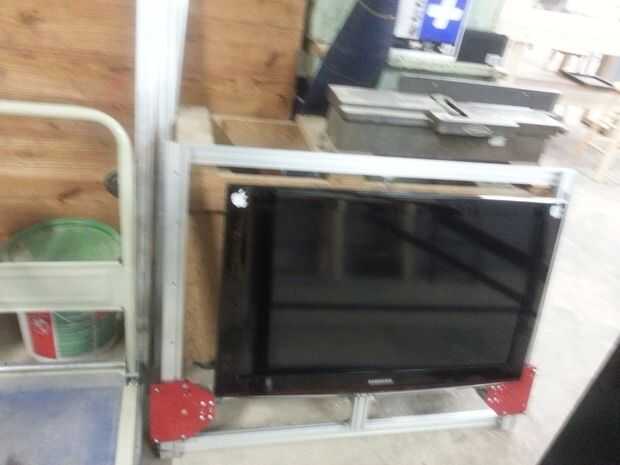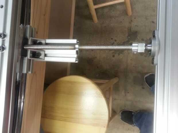 A continuación la extrusión y montaje Vertical TV se une a la extrusión de centro Horizontal (donde el separador de extrusión es la tuerca ACME) con soportes de esquina.
