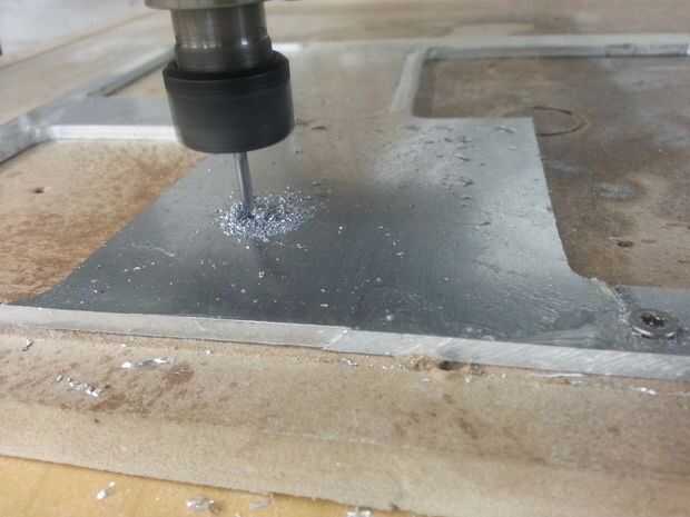 El siguiente paso es cortar un montaje para el paso a paso CNC. Usé un CNC Zenbot ejecutando Grbl para cortar el Monte.