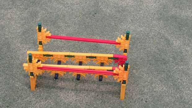Este es el segundo de una serie de 3 ascensores nuevos en nuestra máquina de la bola de k'nex imposible.Esta elevación es bastante pequeña, lo que es útil para espacios pequeños donde tienes que hacer que la bola suba un poco. Ahora, sé que puedes es