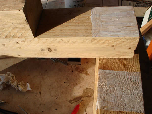 Asegure las piezas de madera con las esquinas metálicas y los tornillos. En madera detalles en madera, se puede aplicar pegamento para madera para la fuerza adicional. Los tornillos sostendrán las piezas firmemente en contacto mientras el pegamento endurece.