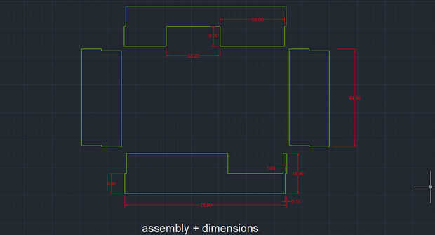 Todos los componentes fueron arreglados en las hojas de madera contrachapada en CAD para hacer un plan de corte eficiente. Usé un simple hacer muescas en los bordes para dar una conexión sólida.