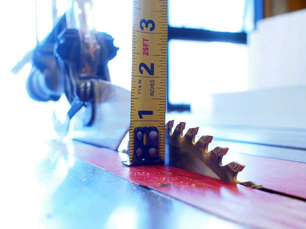 Usando una tabla vio que arrancaron la madera contrachapada en secciones ásperas, salvar los recortes detallados para el patín de la sierra o de vaivén. Con todas las secciones del marco de cama el corte marcada con lápiz para hacer un seguimiento.