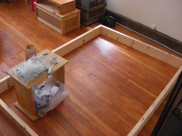 Me has experimentado con plataformas elevadas para dormir antes y han construido 3 camas elevadas, cada mejora en diseño y funcionalidad. Aquí es el último diseño, con 3 hojas de madera contrachapada y la incorporación de:Base de inserción en todos l
