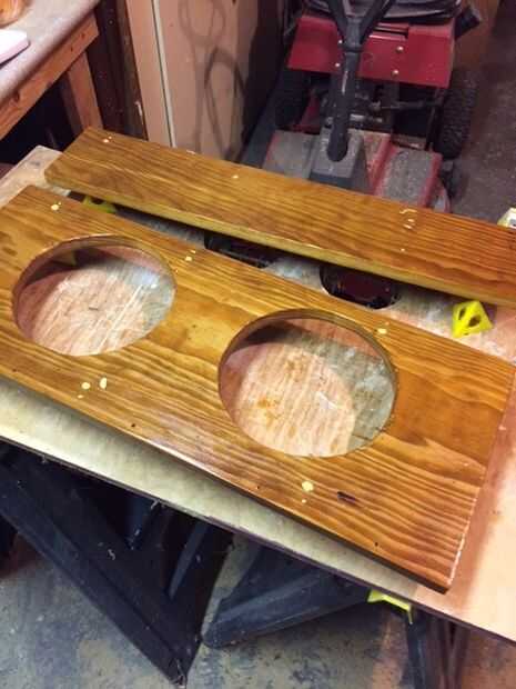 Pasé algunos haciendo tiempo, tazones de fuente de las matemáticas para centrar perfectamente el alimento de perro en la plataforma. Para ahorrarle el tiempo de averiguar todas las dimensiones, he incluido mis medidas en la imagen adjunta. Empecé por la medición de una línea horizontal en toda la cara de la plataforma para fijar mis tazones de fuente en el centro de la plataforma cuando el tablero fue unido. Puesto que el tablero se sentó encima de la plataforma y fue 3/4" densamente, me mide 5 1/8" de la parte delantera y coloca una línea horizontal a través de la plataforma (5 1/8 "+ 5 1/8" + 3/4 "= 11"). Luego fui 4" pulgadas de la parte de la Junta Directiva para fijar el soporte desde abajo sin en el camino de los tazones de fuente que cuelga. Desde este punto, medido durante 8 1/2" para tener en cuenta los 8 1/2" tazón de fuente. Salí de un espacio de 3 pulgadas entre las piletas y luego marcó otro 8 1/2" de para el segundo tazón de fuente. La última medición fue otro 4" pulgadas para el otro lado del soporte. Cuando se agrega para arriba, ellos ascendieron a mi total 28" plataforma. -MATEMÁTICAS!