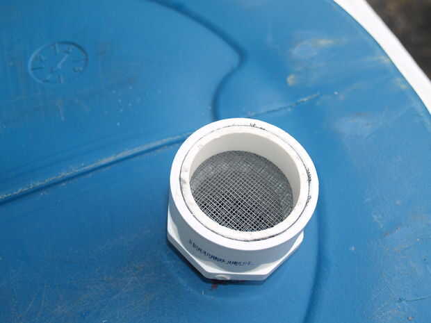 Cortar 2 4 X 4" square pedazos de pantalla luego atraviesan el patrón. Entonces ligeramente molido abajo un pedazo de tubería de 2" a 3/4" del extremo (ancho de la muela) luego corte 3/4" pieza final para convertirse en el tapón hueco que sostiene la pantalla en lugar de-cortó la pantalla sobrante con un cuchillo de la maquinilla de afeitar y rosca en un agujero de 2-1/2" corte en la parte superior del cañón.