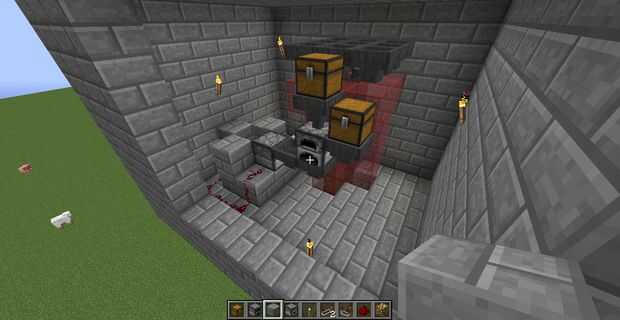 Haga un bucle de redstone va con el gotero y por otro lado poner un comparador en modo que el lado con la 1 antorcha puntos lejos del gotero, y haga clic derecho para que se encienda la antorcha. Colocar un repetidor delante del comparador y luego lazo el polvo redstone juntos para que cuando un elemento se va con el gotero automáticamente se dispara hacia fuera. siguiente ir abajo tan cerca la tierra como usted desea por el agujero le hecho y colocar una tolva para que la tolva recoge los artículos que salen. Punto de la tolva en un pecho y ocultar la tolva si desea. Después de que haya terminado, y usted puede comenzar a usar la máquina! Oculta la parte superior de la máquina, y si usted hace que a la luz tanto no turbas desovan. Eso sería por el tutorial!