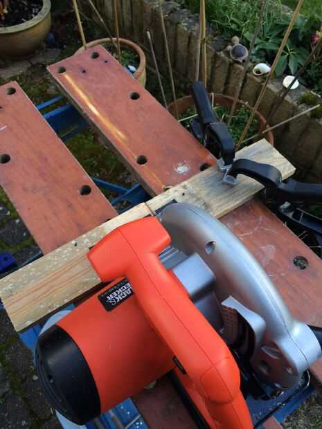 Hacer cortes con una sierra circular o sierra de mano y mantener la mano de los cortes apagados (que vendrá a estos más adelante)