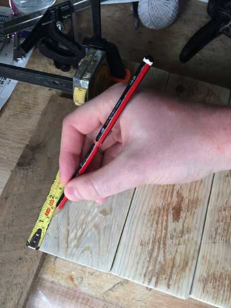 Ahora voy a hacer otra marca en la madera 1,5 pulgadas por encima de las marcas anteriores