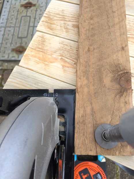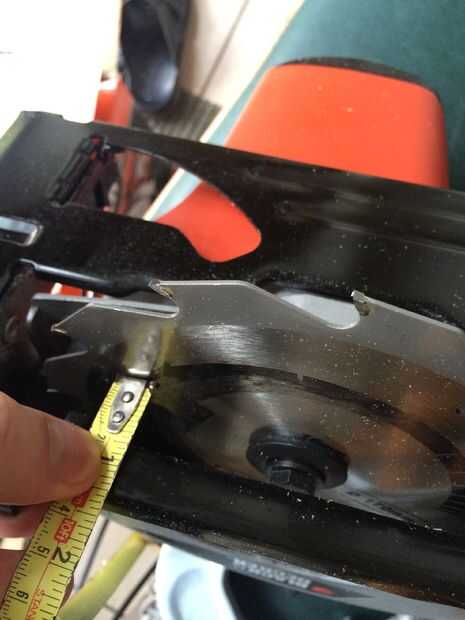 Con el fin de cortar recto he medido la distancia entre la cuchilla en mi sierra circular y el borde del bastidor de la sierra, que poco menos de 1,5 pulgadas.
