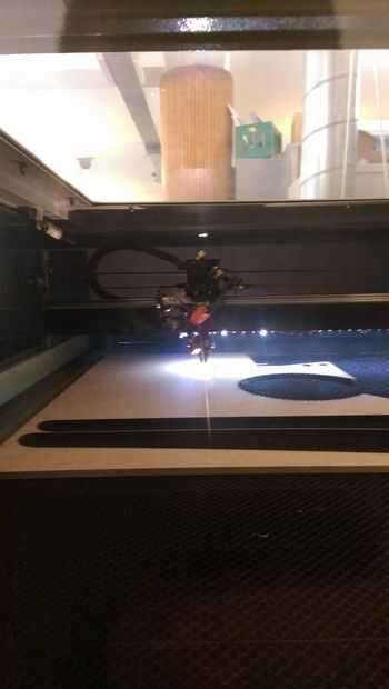 SOM en illustrator fil, så laserskæren kan køre det Herefter indsættes vores plade, udskære de forskellige dele de og laserskæren.
