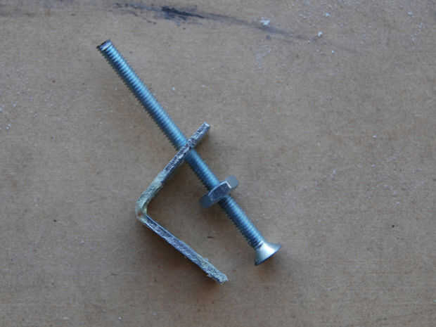 Utilicé un soporte en L, un tornillo largo y una tuerca para crear los montajes. La segunda imagen muestra cómo estas piezas van juntos.