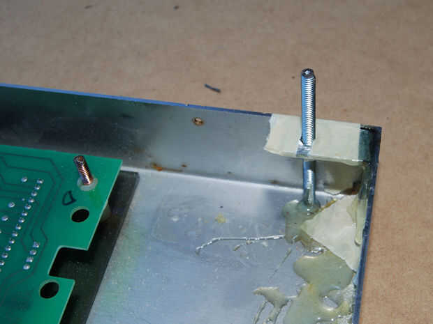 Después del montaje de los soportes debe usar la cinta adhesiva para sujetar los soportes en su lugar. Luego debe epoxy los lados y los bordes del soporte L. Después de que haya tenido tiempo para debe epoxi la parte inferior del tornillo a la caja de luz para que los pernos se mantengan rectos.