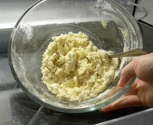 Agregue a la mezcla y mezclar hasta desmenuzable.
