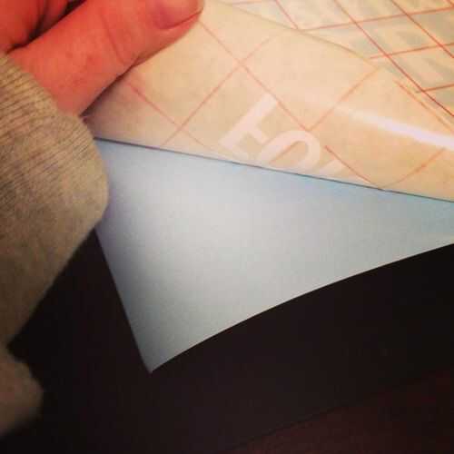 A través de algún juicio y un montón de errores, finalmente llegamos a un camino factible para hacer unas pegatinas de vinilo-esque. Usando una combinación de etiquetas de envío y laminado de vinilo transparente alcanzamos lo que creemos que es el mé