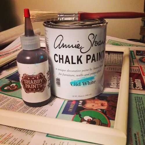 Para el marco pinté 2 capas de pintura de tiza de Annie Sloane en blanco antiguo. Para hacer que parezca más angustiada y shabby chic usé mal pinta café Vax.